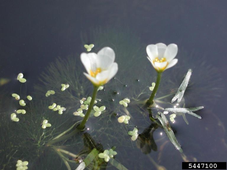 Flower: Cup-like flowers grow above the water and are visible from May- September. The flower is less than 2 cm across and ranges in color from white to pale yellow. The flower emerges on stalks from the tips of the stems.